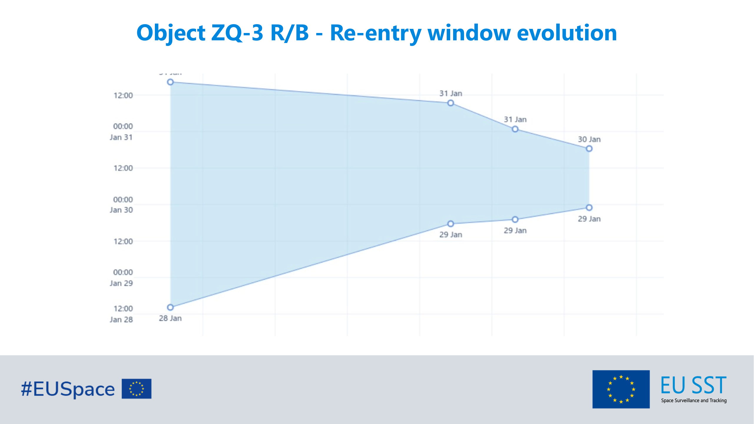 The EU Space Surveillance and Tracking (EU SST) Operations Centres are actively monitoring the re-entry into Earth's atmosphere of the space object ZQ-3 R/B, the second stage of a launch vehicle that could have a dummy payload attached. The EU SST network of contributing sensors is closely following the object to refine the re-entry window, which is currently estimated to be around 30 January at 8:40 UTC, with an uncertainty of less than 10 hours.